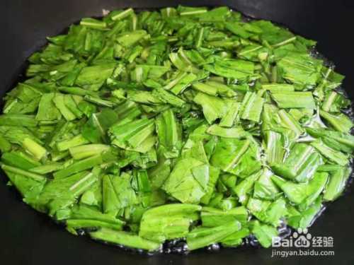将油麦菜叶子掰开,洗净切段,放入锅焯水30秒捞出,放入凉水中。
