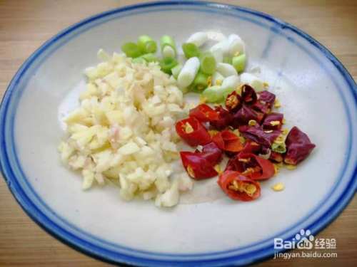 干辣椒,葱切成小段,蒜粒去掉外皮切成蒜末待用。
