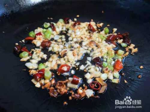 锅中烧热适量油,放入辣椒段、葱段、蒜末,开小火炒香。