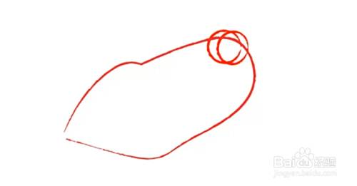 首先画一个拉长的形状,然后使其左侧尖头。然后在形状的右上半部分添加两个小圆圈。