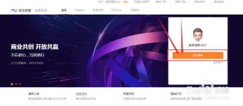 进入阿里妈妈登录页,填入账号密码,进入里妈妈后台,鼠标悬停账号名,显示【淘宝联盟 站长】点击进入下一步,点击【进入后台】,点击【推广管理】,