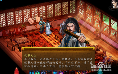 来到扬州城客栈之后上到二楼,在二楼这里就有个说书人。
