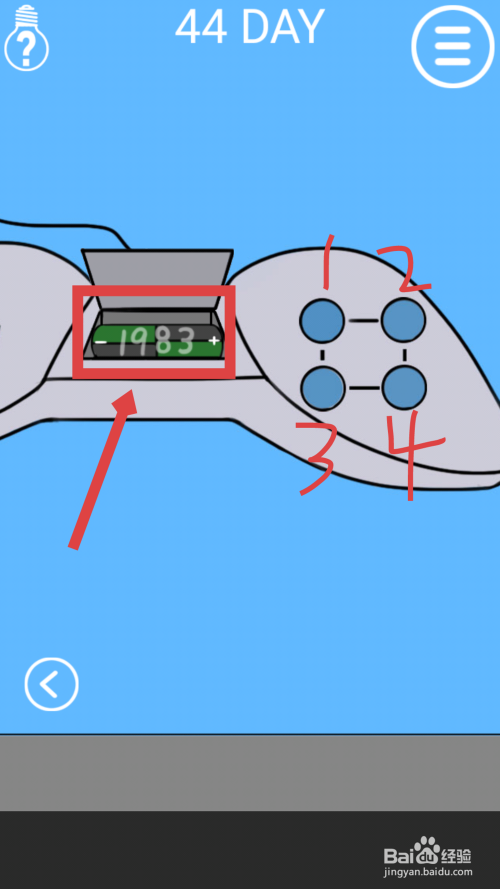 点击电视机,根据手柄上的按键,可以看出移动的顺序是3142134。点击地上的手柄,从左到右按3142134的顺序按下按键,能看到密码1983。点击门旁边的电子锁,输入密码1983,按下回车enter键,开门过关。