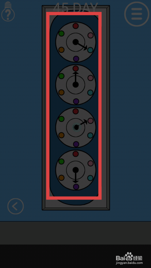 点击桌子上颜色盘,4个盘里面都少了一种颜色,可以推测出颜色顺序为蓝红粉紫。点击门右侧的锁,然后从上到下按照蓝红粉紫的颜色设置,就可以开门过关了。
