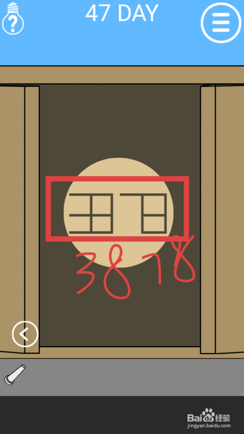 点击拾取桌子上的手电筒,然后在点击查看柜子,把手电筒拖到柜子内部,能看到数字3878。点击门旁边的电子锁,输入密码3878,按下回车enter键,就可以开门了。