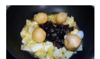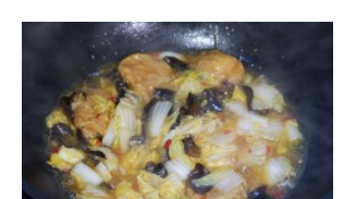 开盖加入盐,鸡粉、水淀粉翻炒至于汤汁浓稠明亮即可