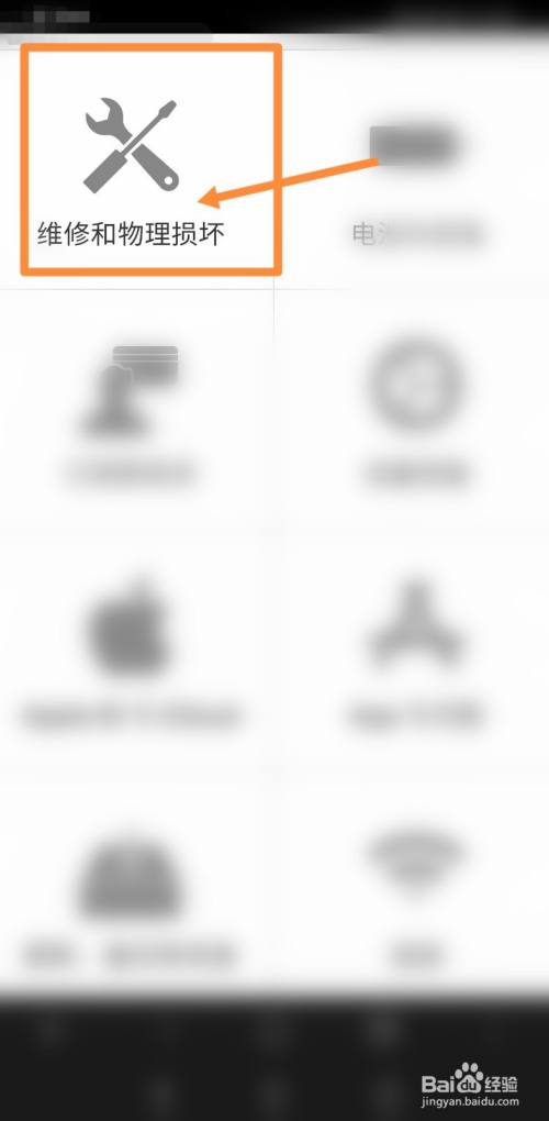 进入Apple维修页面后,点击页面上的维修和物理损坏,如下图所示: