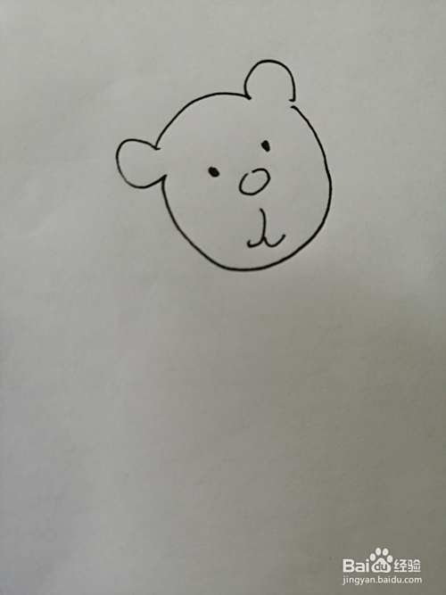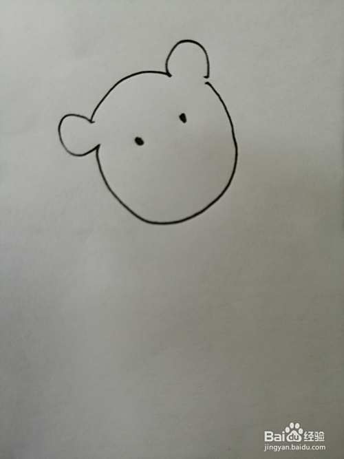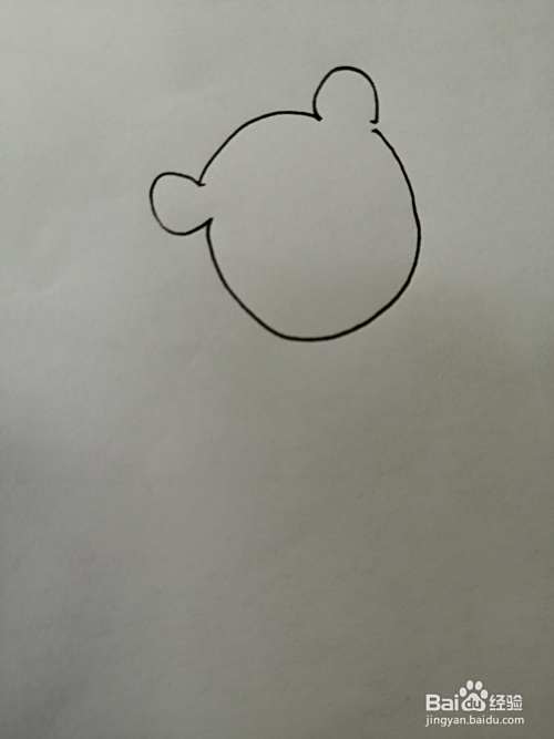 第一步,我们先把可爱的小熊的头部轮廓画出来,注意小熊耳朵的画法。