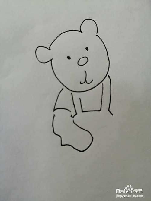 第七步,最后把可爱的小熊的两只鞋子画出来。可爱的小熊就画好了。