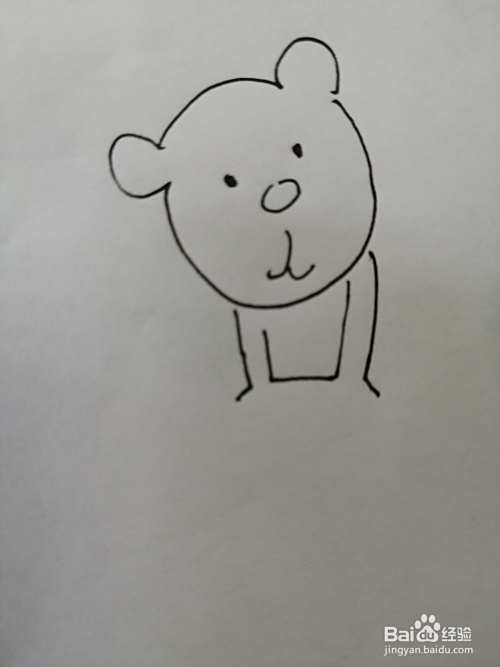 第四步,接着继续画出可爱的小熊的小嘴巴,小嘴巴画法也比较简单。