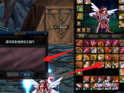 3、然后在镶嵌界面把装备拖入镶嵌栏。
