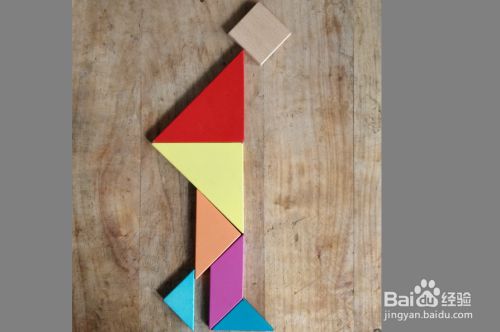 摆上余下的小三角形,放在平行四边形的下面挨着,直角向上,如图。一位路人就拼组好了。