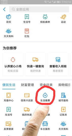 登录支付宝,找到并点击“生活缴费”按钮。