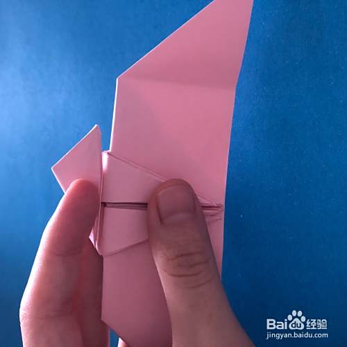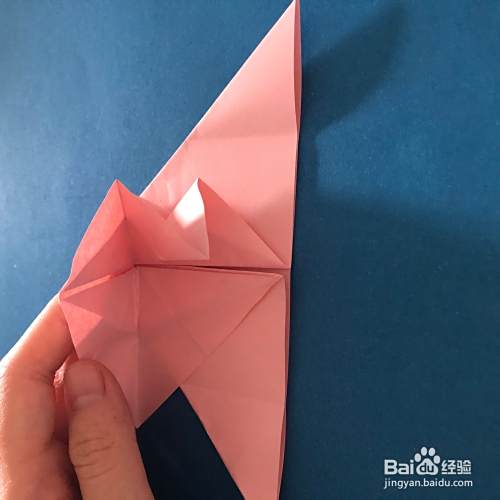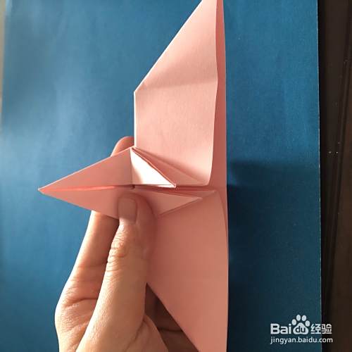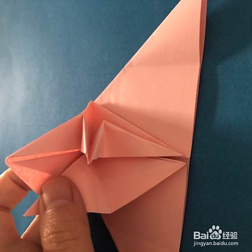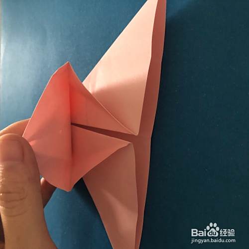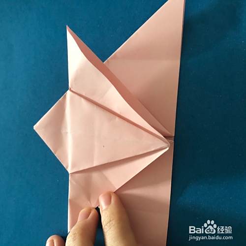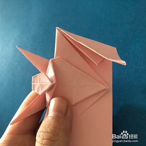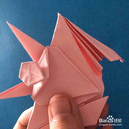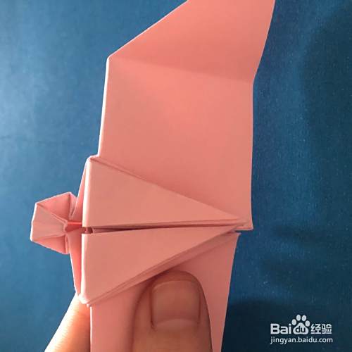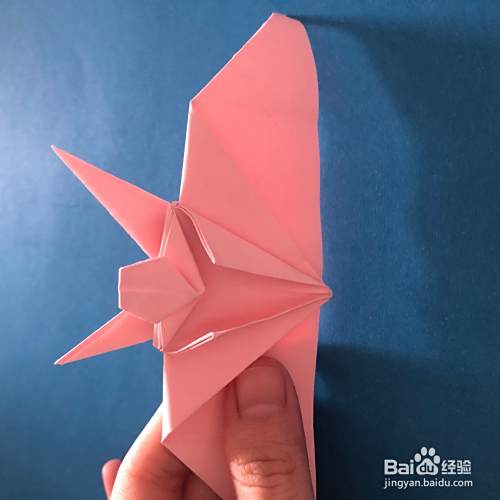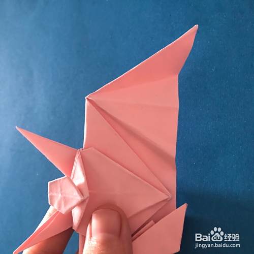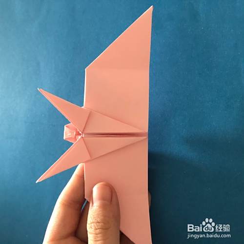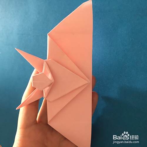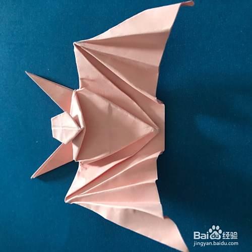 最后,我们再将蝙蝠背后,另外两张纸,把它往上折叠作为蝙蝠的脑袋,把蝙蝠的两边翅膀折叠出来就完成了。