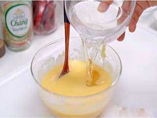 鸡蛋、炼奶、玉米油和小苏打混合,搅拌均匀。