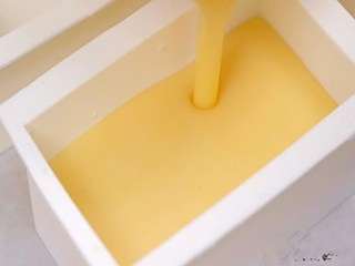 倒入模具中,排气,盖上保鲜膜,静置45分钟。