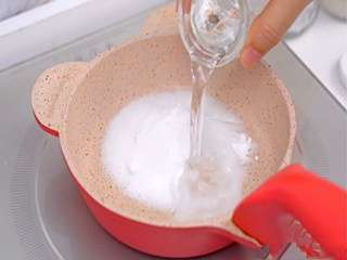 白糖和清水倒入锅内,大火,煮沸,搅拌均匀。