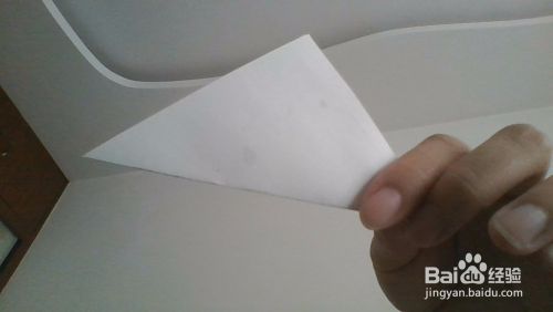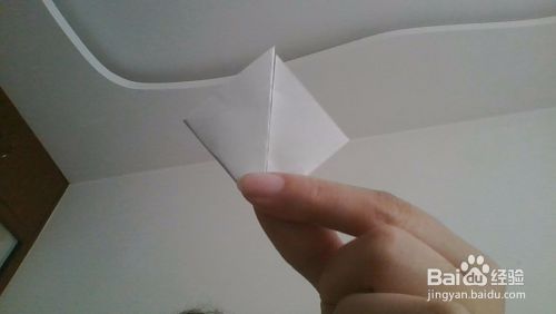 我们将一张正方形的折纸沿着对角线进行对折。然后2边的锐角,我们沿着中间线进行对折。