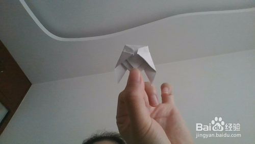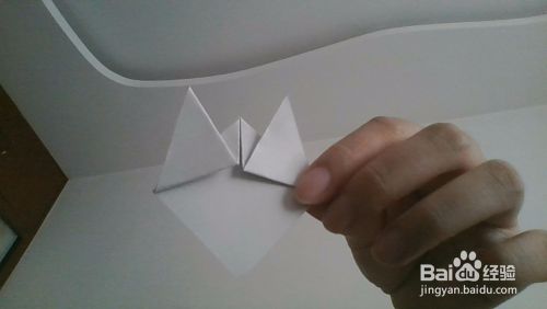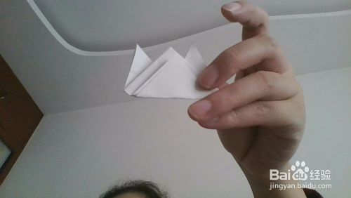 现在我们将折纸的反面下方的三角形朝上进行翻折,如图所示的学习。