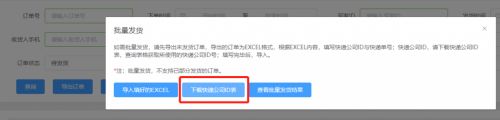 将相关快递信息填入下载的EXCEL表格中,表格中需要的快递公司ID可点击【批量发货】下载快递公司ID表,所有信息填入表格后点击【批量发货】-【导入填好的EXCEL】,即可完成发货。