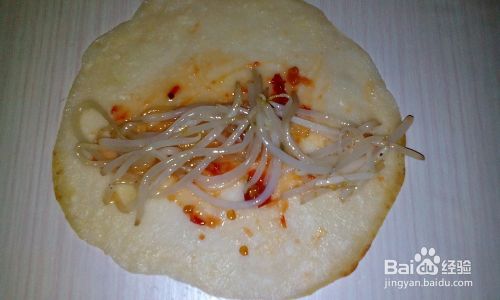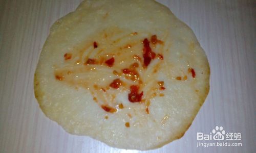 在薄饼上涂一层蒜茸辣酱