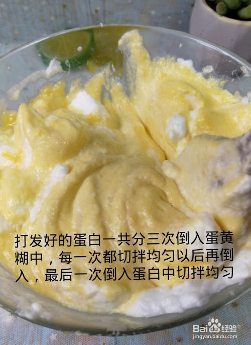 将蛋白分三次加入蛋黄酱中,上下切碎,拌匀,防止消泡。在加入下一种蛋白质之前,每次都必须切断并半融合。