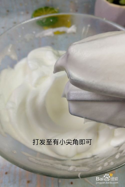在蛋清中加入两滴柠檬汁和糖,用电动搅拌器高速搅拌。新手建议加三次糖以避免失败