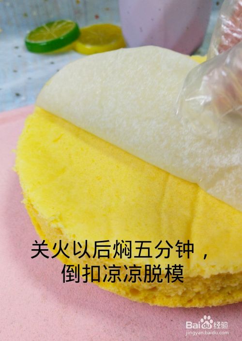 用塑料薄膜盖住并刺出孔。用冷水蒸30分钟,关火,文火煮5分钟。然后倒过来冷却脱模。