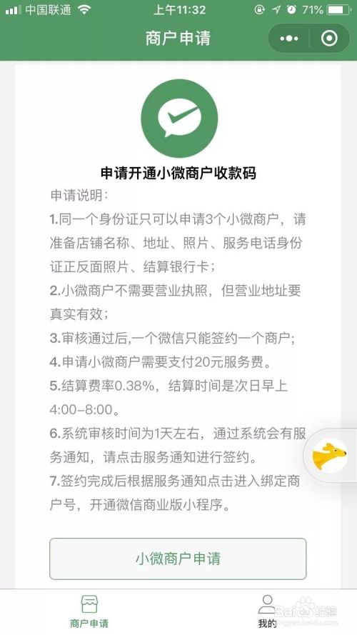 微信进入“商家码”小程序点击“小微商户申请”;