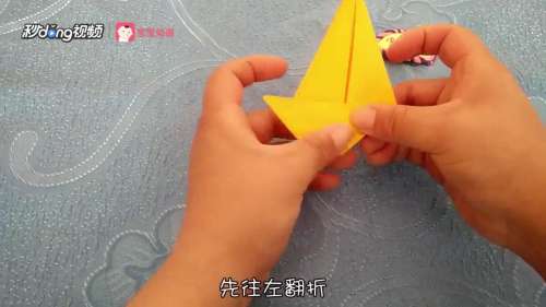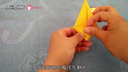 8根据折痕向左翻折。