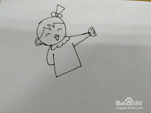 然后我们就开始画小女孩挥着的手。一只手靠背后,一只手挥起来!如下图