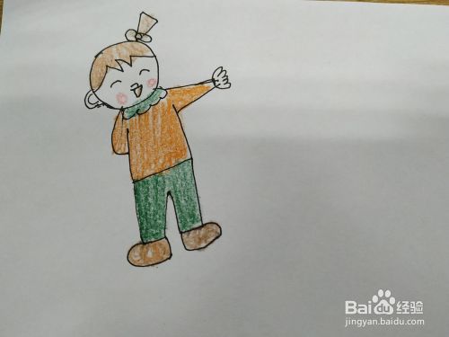 最后我们拿出画笔为小女孩涂上漂亮的颜色,穿上一个橘黄色的上衣和绿色裤子,也是挺漂亮的哈。如下图