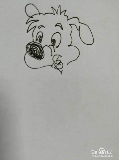第四步,接着把可爱的小狗的黑色的小鼻子画出来,注意小鼻子轮廓的画法。