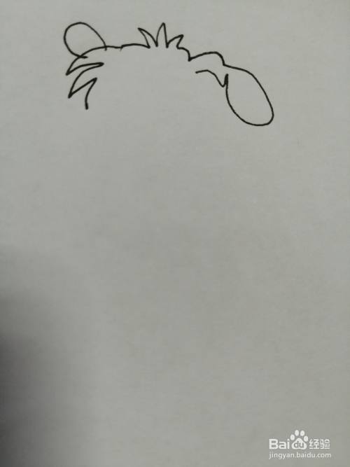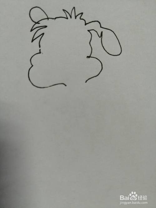 第一步,我们先把可爱的小狗的头部轮廓画出来,注意小狗的两只耳朵的画法。