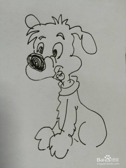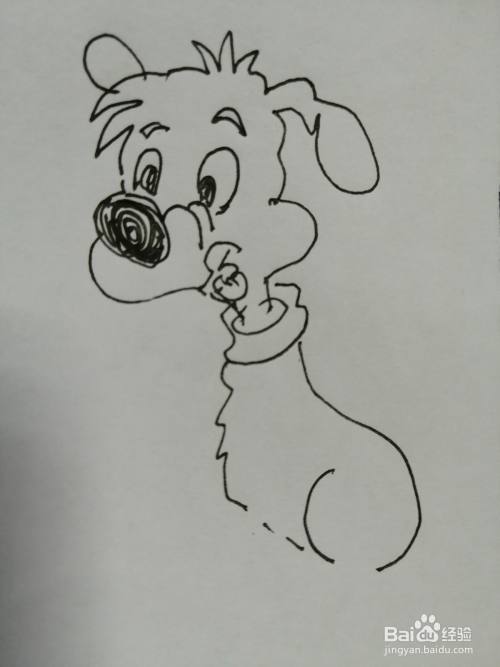 第五步,然后继续画出可爱的小狗的小嘴巴,注意小狗嘴巴下项圈的画法。