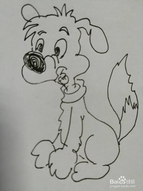 第七步,最后把可爱的小狗的小尾巴画出来。简笔画可爱的小狗就画好了。