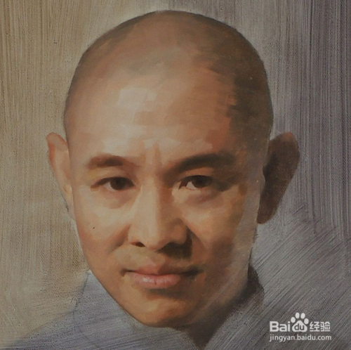 写实油画李连杰绘画过程,然后详细填充头部。