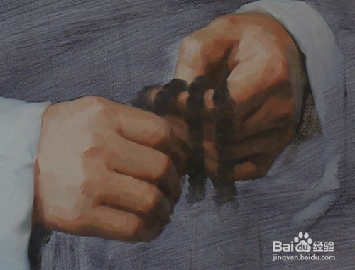 写实油画李连杰绘画过程,手部以及手部物品修饰。