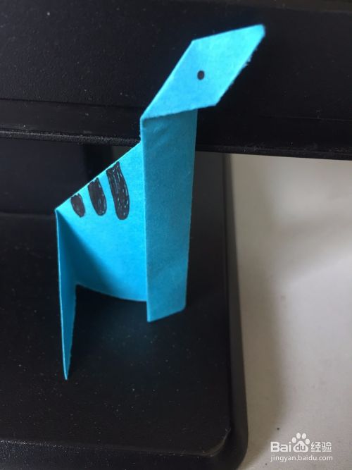 最后我们再给它画上黑黑的条纹,我们的蛇颈龙手工折纸就完成了。