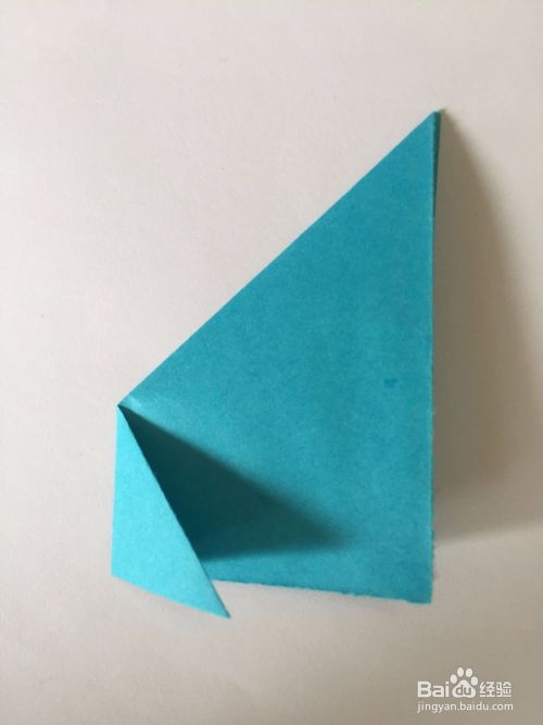 然后我们把折起来的下面的尖角向上折叠起来一个小三角形