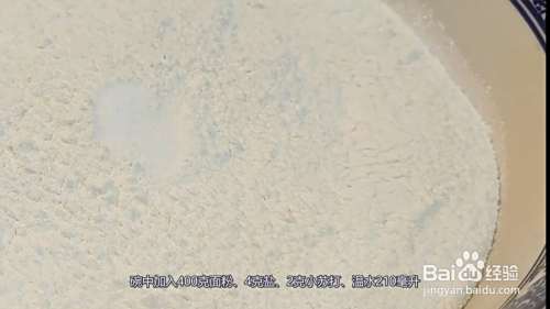 碗中加入400克面粉、4克盐、2克小苏打、温水210毫升,混合均匀,揉成面团后,醒面30分钟。