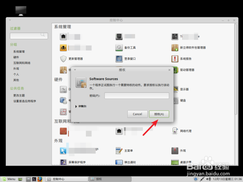 接着会出现一个提示框,在这里输入开机密码(管理员密码),输入后点击授权。