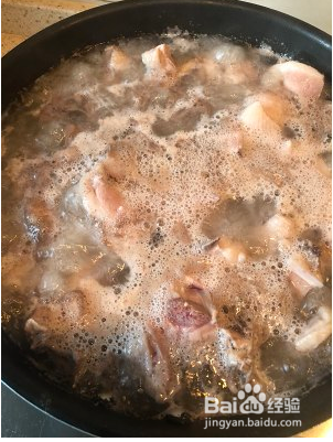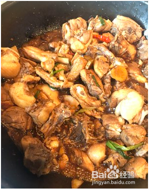 加入生抽,老抽,盐,我加了一些自家酿的米酒。一般料酒啤酒都可以,反正都是去腥提鲜。