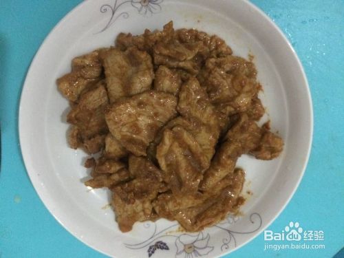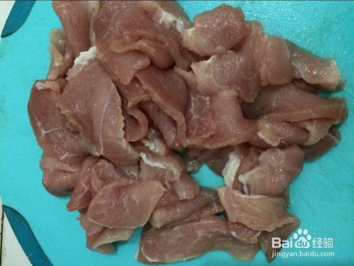 把肉去掉筋膜,切成不太薄的肉片。