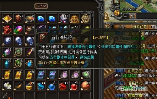 打开 锻铸--五行洗练 左边显示的是可以洗练的装备 洗练装备五行属性 用到的是装备洗练符
