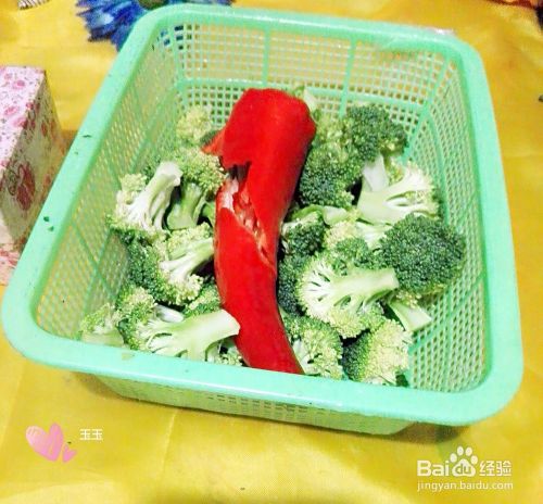 把西兰花分成一小朵,把红椒的籽拿出来不要。把鲜鱿鱼洗干净控水,再把背上的皮去掉。