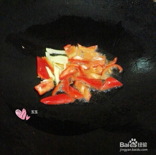 再把辣椒写成片,锅烧热放少少油,爆香大蒜和辣椒。