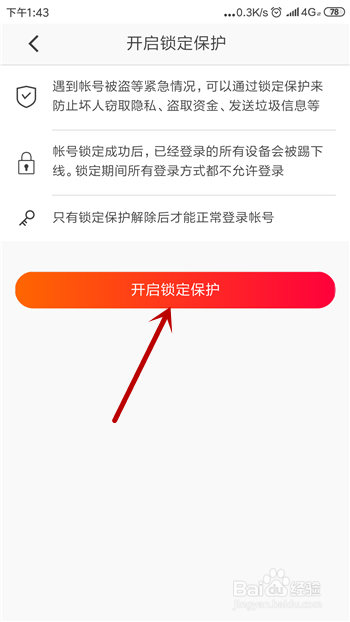 然后我们会看到什么是账号锁定,了解后点击【开启锁定保护】。
