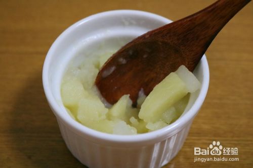 用勺子捣成泥状,可适当加入骨汤调浓度