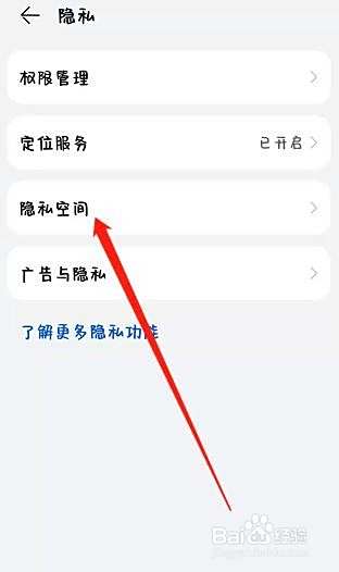 点击隐私后会看到隐私空间,点击隐私空间。